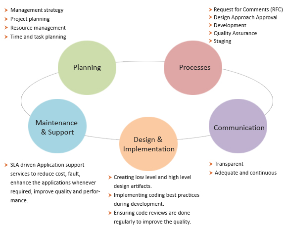 Our custom applications development services comprises of complete software development lifecycle from business requirement analysis, plan, design, development, testing, deployment and warranty support of the application/product. Using industry best practices, methodologies, tools, collaborative techniques and our robust development processes, enablers we help our customers quickly & efficiently build, deploy and manage high quality applications / systems. We lay great emphasis on superior design, usability, portability and overall user experience so that our customers stay ahead of competition. Our custom applications development service offering consists of:
